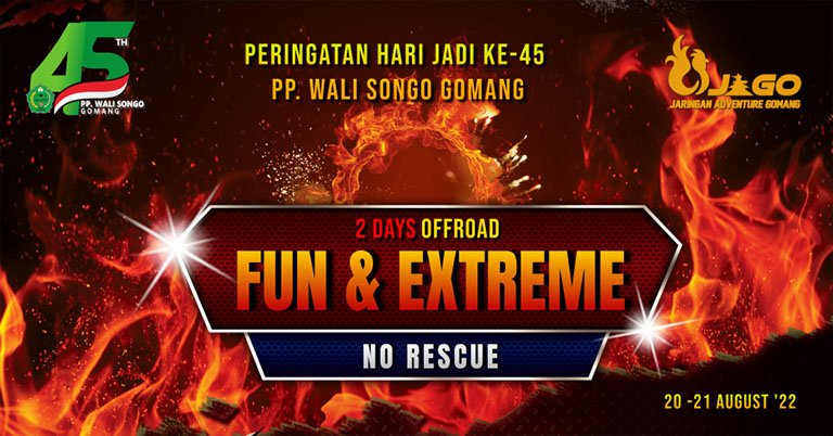 2 Days Offroad Fun – Extreme dilaksanakan selama dua hari, yakni tanggal 20 – 21 Agustus 2022. Bertempat di halaman Pondok Pesantren Wali Songo Gomang, Lajolor, Singgahan, Tuban. Panitia telah menyediakan jalur fun dan jalur extreme yang bisa dinikmati secara bebas oleh tiap peserta.